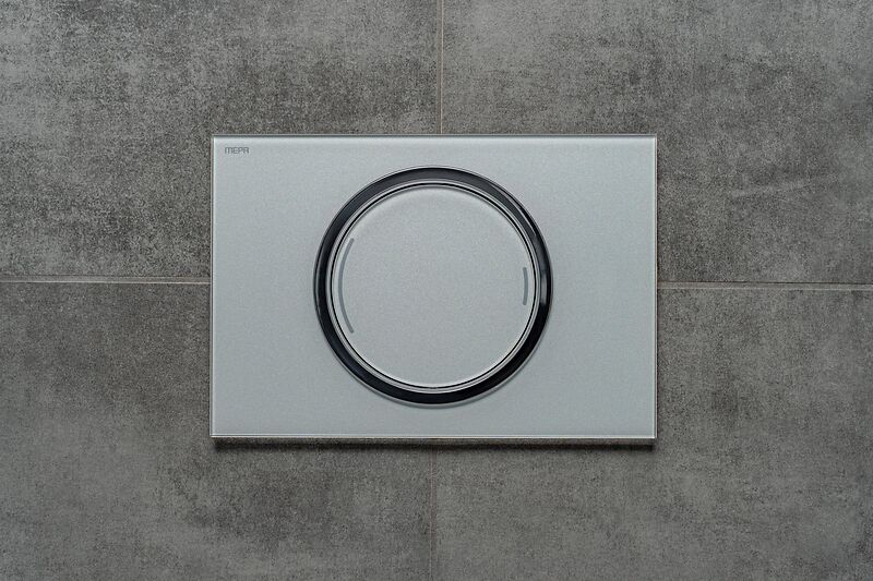 Die Betätigungsplatte MEPA Zero besticht durch ihr zeitloses Design, das elegant umgesetzt und auf das Wesentliche reduziert ist. Der zentrale Chromring unterstreicht die geometrische Formgebung – charakteristisches Merkmal ist ein innovatives Bedienkonzept, das bei der WC-Betätigung die Wahl der kleinen und großen Spülmenge mit nur einer Taste ermöglicht.